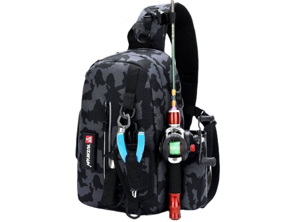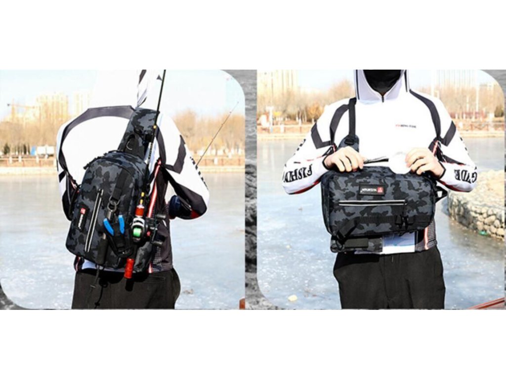Menší batoh přes rameno na rybářské potřeby i běžné nošení. Rozměry 40 x 23 x 13 cm.