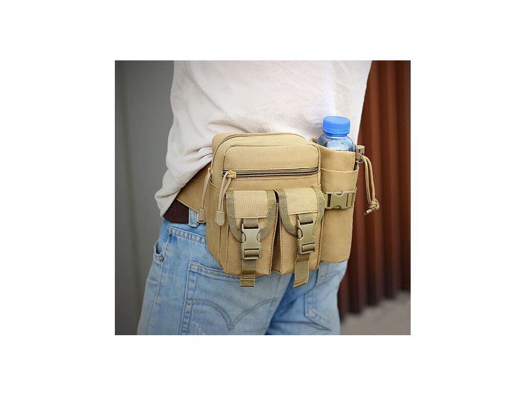 Díky turistickému opasku Merco Tiler budete mít během vašich outdoorových aktivit své vybavení neustále při ruce. Praktický, víceúčelový opasek je vhodný pro takové aktivity jako je rybaření, turistika, kempování, atd. Khaki zbarvený opasek s kapsářem má hmotnost přibližně 250 gramů a vedle hlavní přihrádky s rozměry 20 x 14 x 6 cm disponuje několika dalšími kapsami na zip i kapsami s přezkou, které dohromady pojmou osobní věci i další vybavení jako například menší dalekohled a patrony, sady olůvek a umělých návnad pro rybáře nebo menší láhev s vodou a svačinu. Opasek je uzpůsobený odolat nepříznivému počasí, avšak není zcela voděodolný. Je vyrobený z odolného nylonu a jeho délkově nastavitelný popruh lze přizpůsobit na obvod pasu od 75 cm do 120 cm. Opasek Tiler vás připraví na horský výšlap, víkendové rybaření i na sezonní čekanou.