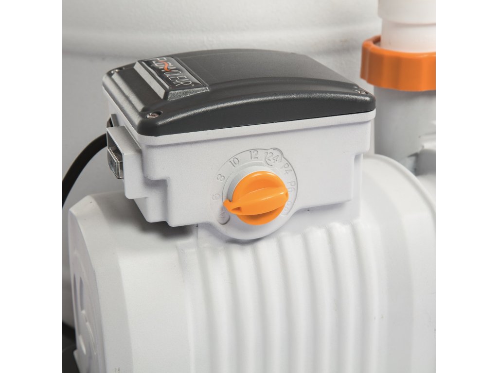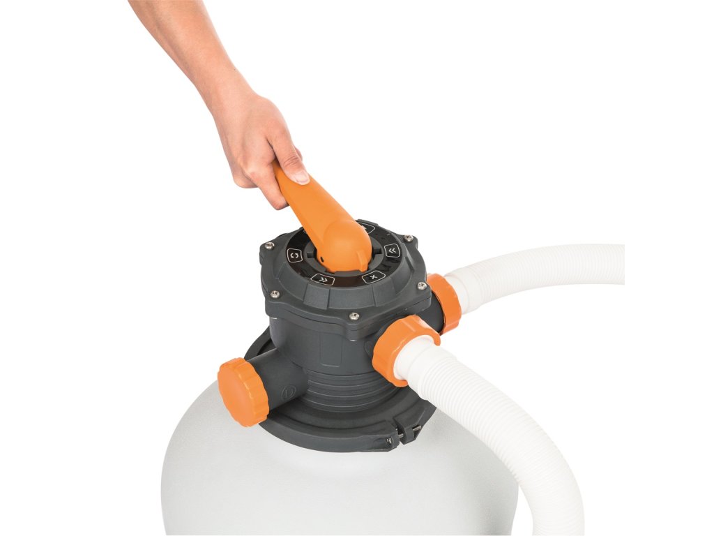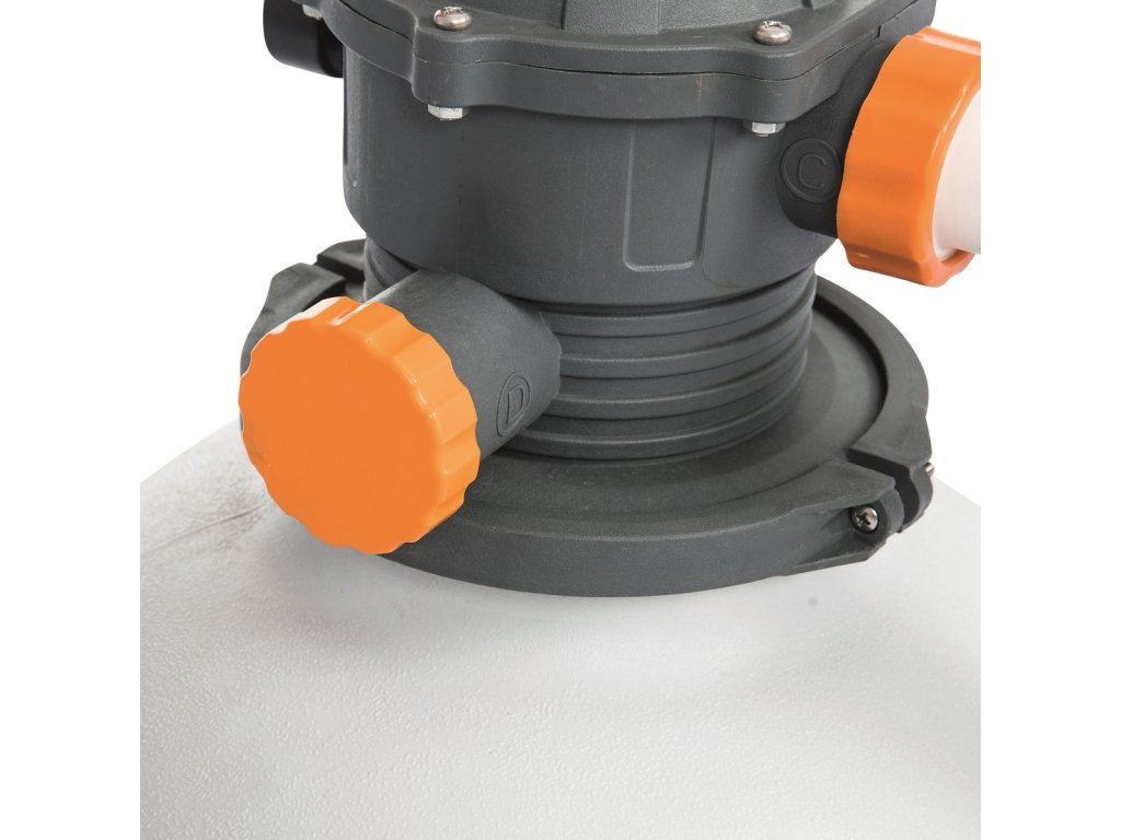 Písková filtrace BESTWAY Super s průtokem 11.355 litrů za hodinu, pro velké nadzemní bazény. Šesticestný ventil pro jednoduché nastavení optimální filtrace. Doporučeno pro bazény s objemem do 66.000 litrů. Technická data: