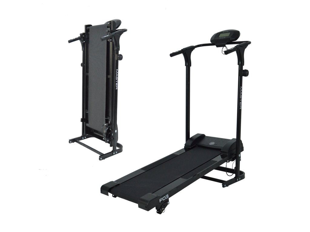 Nemotorový běžecký pás MASTER F-03 funguje na principu magnetického odporu. Je vhodný pro začátečníky a díky jeho nízkým nárokům na prostor je vhodný i do menšího bytu. Tento pás má jeden stupeň sklonu a manuálně nastavitelnou zátěž.