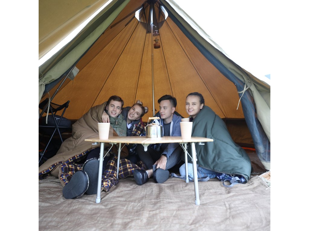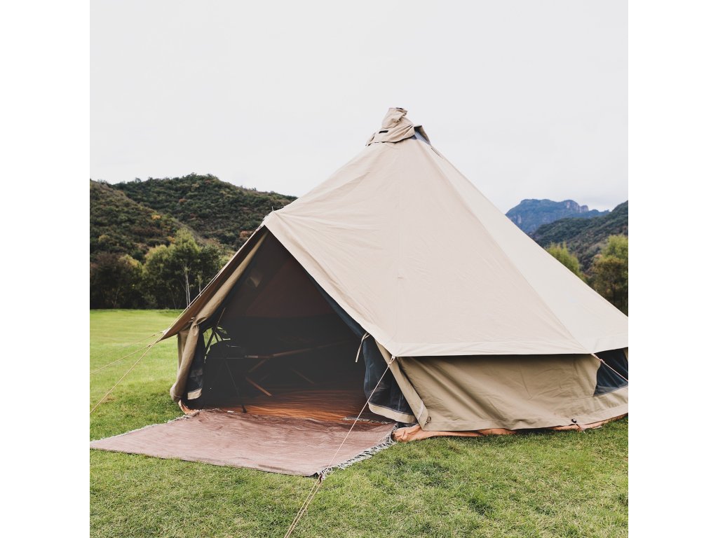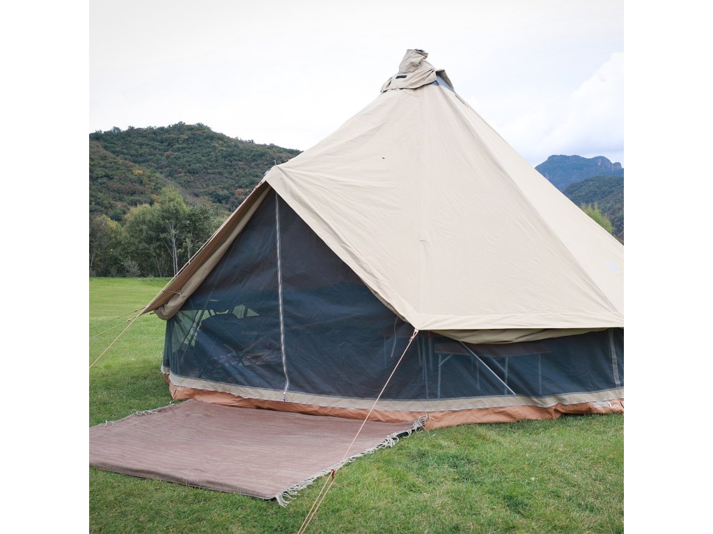 velký glampingový stan s průduchy pro komín