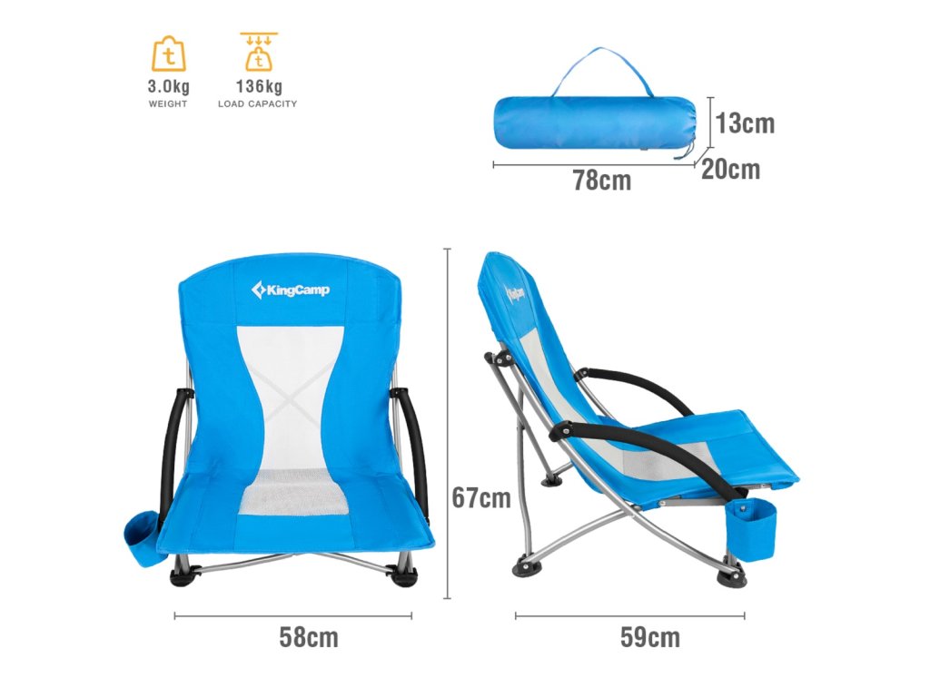Kemping skládací židle KING CAMP Deluxe s opěrkami ocel - nízká skládací židle s ocelovým rámem. Technická data: