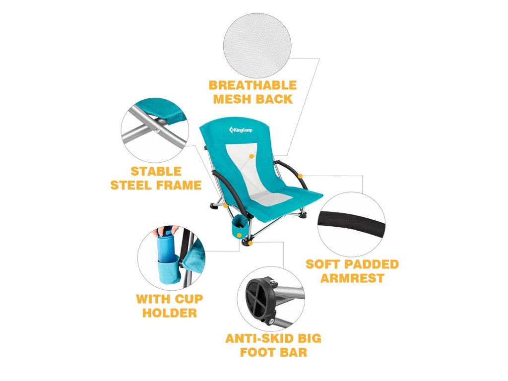 Kemping skládací židle KING CAMP Deluxe s opěrkami ocel - nízká skládací židle s ocelovým rámem. Technická data: