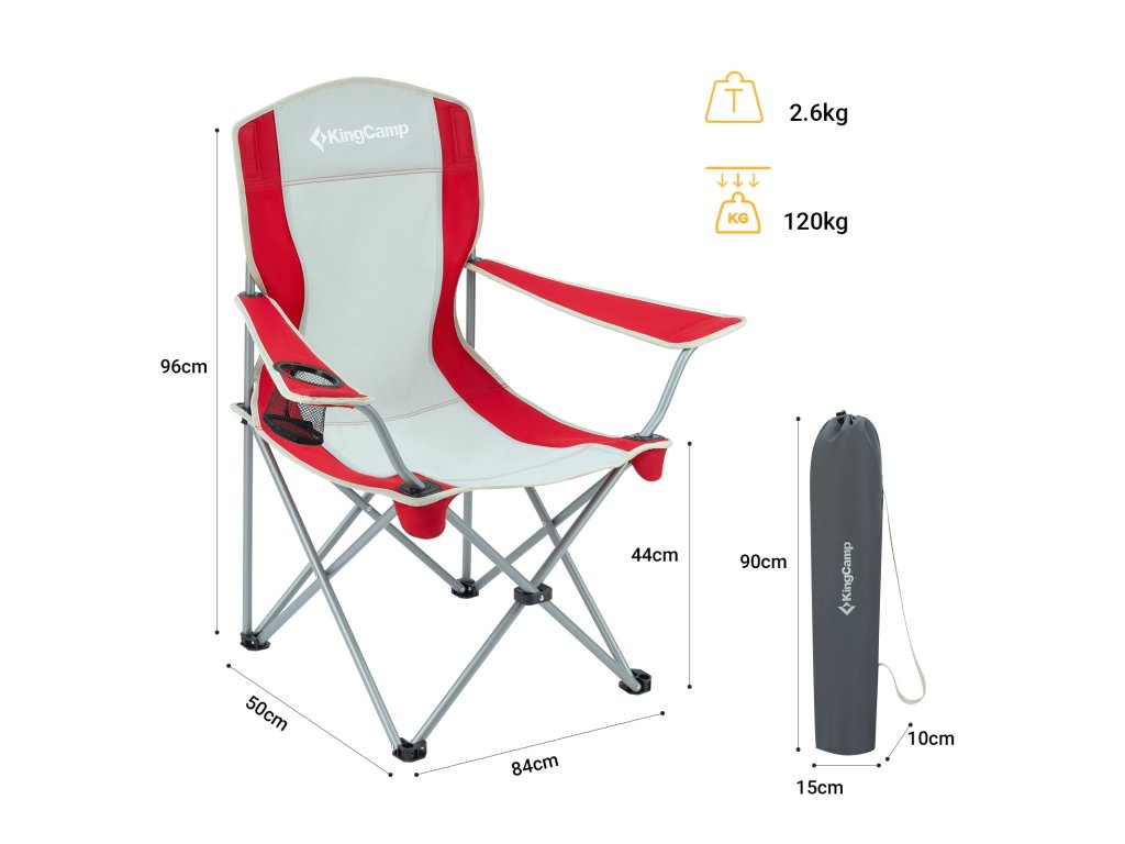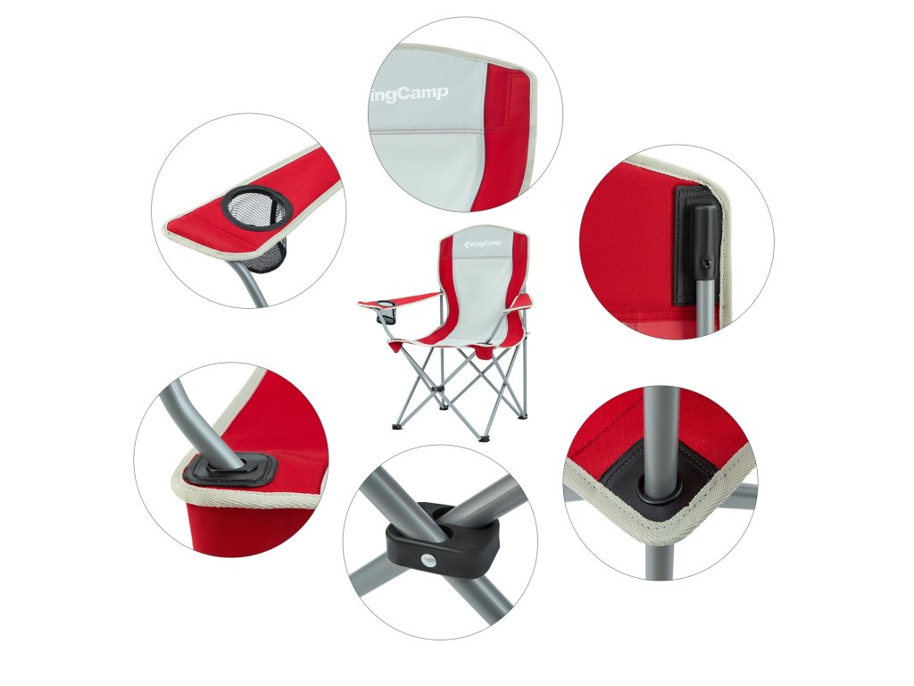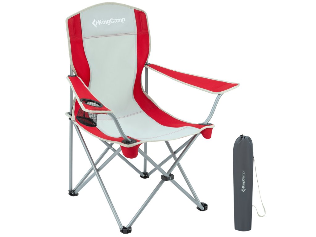 Kempingová skládací židle KING CAMP s opěrkami ocelová - červeno-šedá