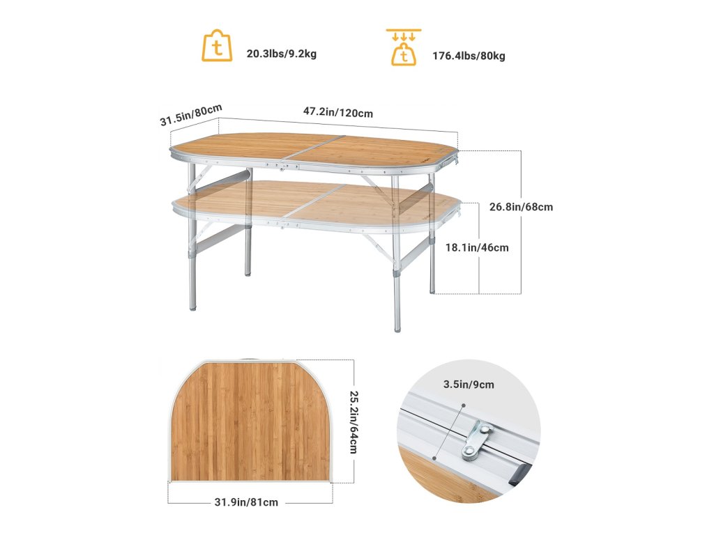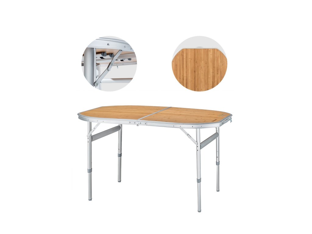Skládací kempingový stůl KING CAMP s bambusovou vrchní deskou o rozměrech 120 x 80 cm