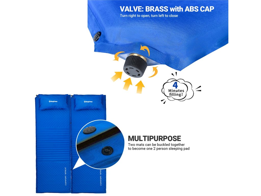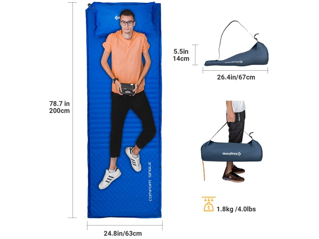 Samonafukovací karimatka KING CAMP Comfort Single o rozměrech 198 x 63 cm a síle 4 cm. Technická data: