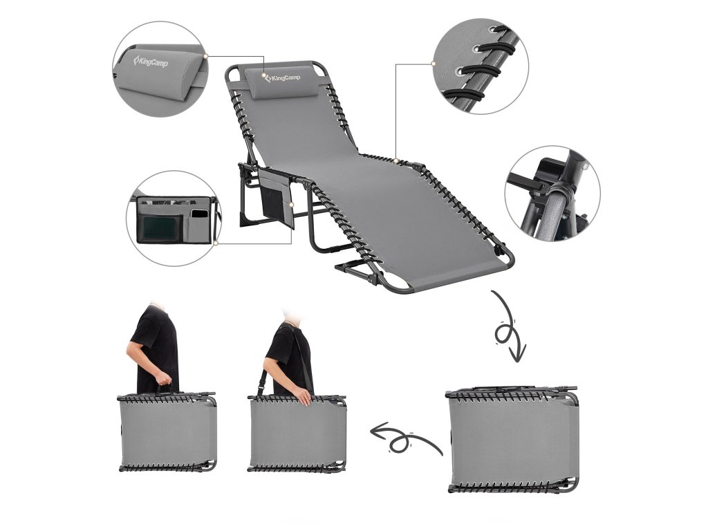 Skládací campingové lehátko KING CAMP Berlin s polohovatelnou ocelovou konstrukcí a nosností až 120 kg.