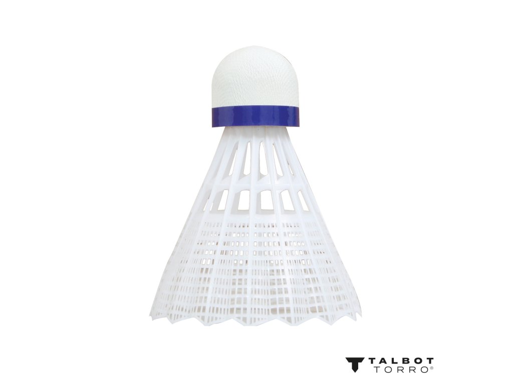 Badmintonové míčky TALBOT TORRO Tech 350 od známé německo-britské značky TALBOT TORRO jsou odolné nylonové míčky se syntetickým korkem. Jsou vhodné zejména pro volnočasové sporty, tréninky či školy, ale také jako kvalitnější náhradní míček pro venkovní badmintonové hry. Míček má dobré letové vlastnosti. V dóze je 6 kusů středně rychlých bílých míčků (modrý pruh). Rychlost lze rozpoznat podle příslušného barevného označení na hlavě míčku. Zde je připevněn barevný pásek.