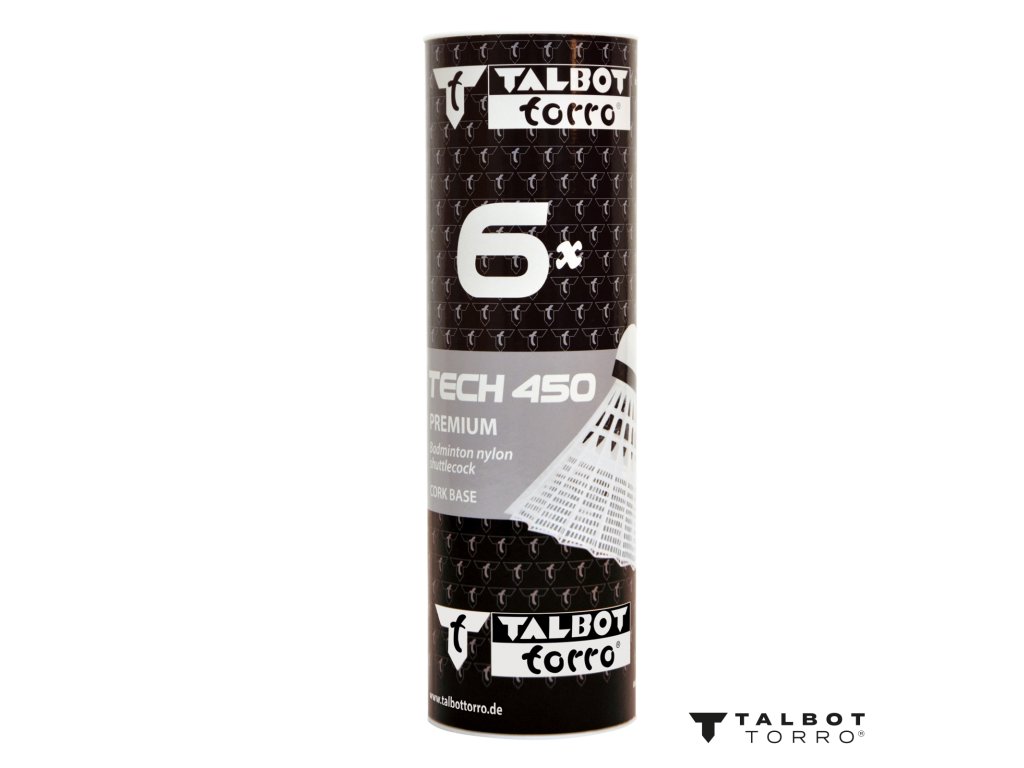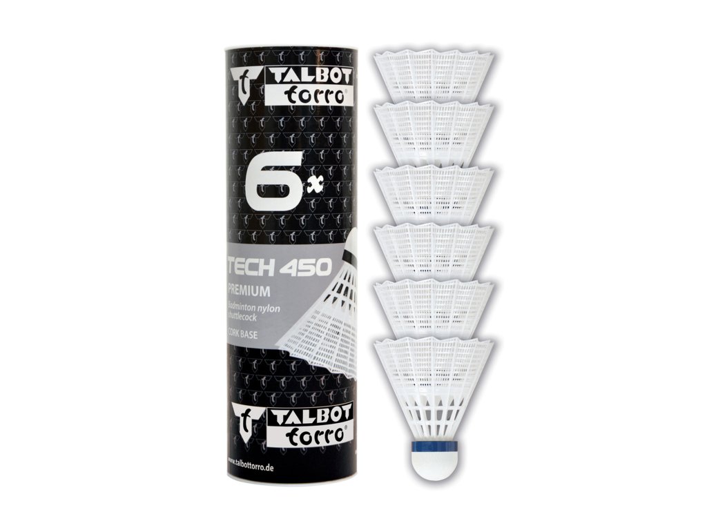 Badmintonové míčky TALBOT TORRO Tech 450 od známé německo-britské značky TALBOT TORRO jsou vysoce kvalitní a odolné turnajové nylonové míčky s korkovou základnou. Míček je zvláště vhodný pro ambiciózní rekreační sporty a trénink. Péřové letky jsou vyrobeny ze 100% čistého nylonového materiálu a žádného „levného“ recyklátu. Čistý nylon dělá letkz mnohem pružnější, jsou tedy odolnější a netrhají se tak rychle. Hlava míčku je vyrobena ze 100% čistého korku (nikoliv lisovaného korku, který je slepený a lisovaný z korkové drti). Celkově míček nabídne lepší letové vlastnosti a větší odolnost.