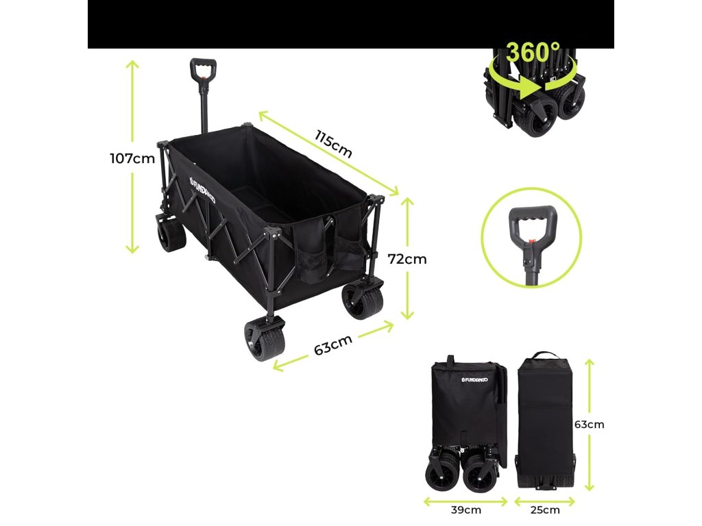 Skládací vozík KING CAMP Folding Wagon je zajímavým doplňkem vašeho campingového vybavení, umožňuje transportovat libovolná břemena bez nutnosti nosit je v batohu či rukou.