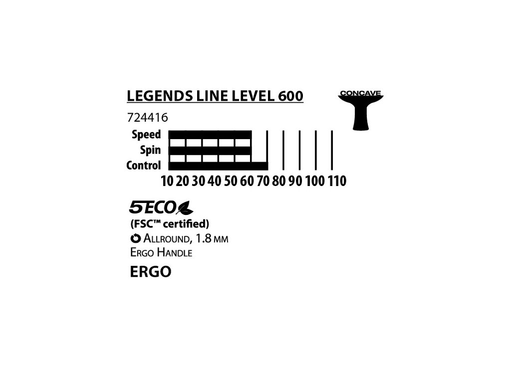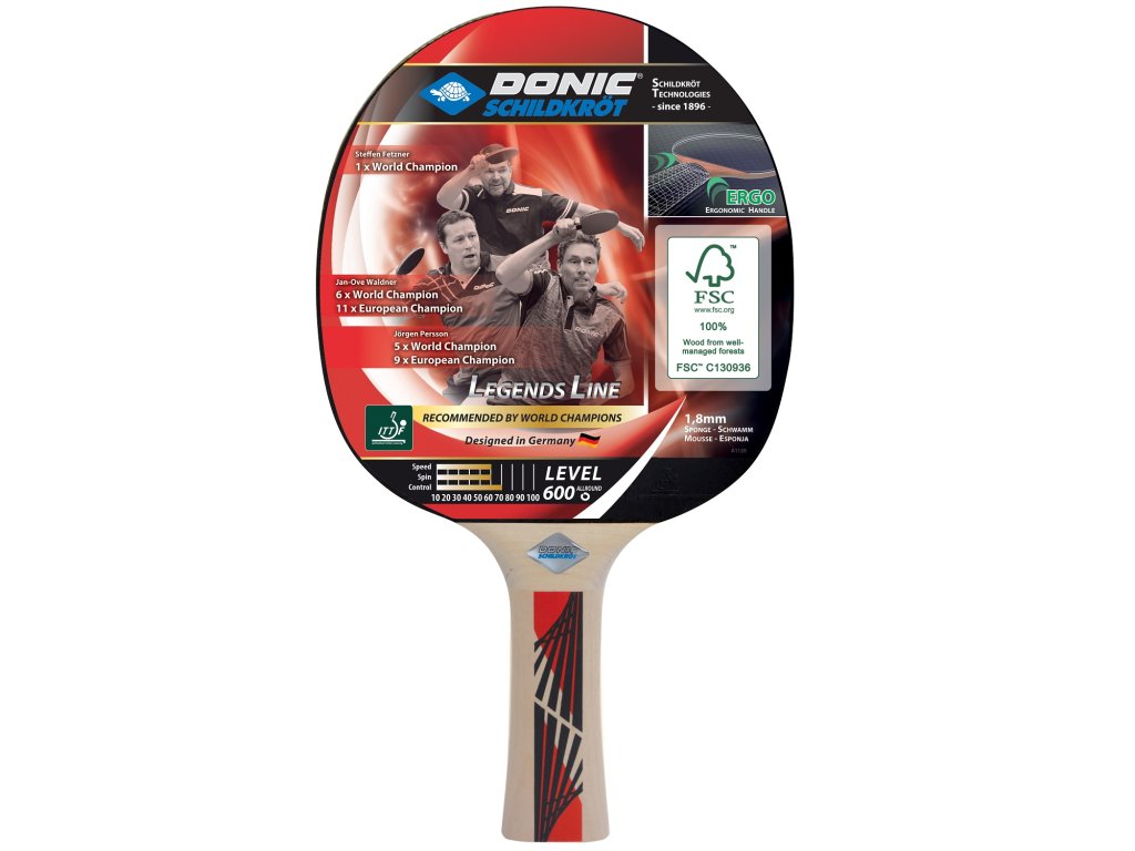 Pálka na stolní tenis DONIC Legends 600 FSC je určena rekreačním hráčům vyznávajícím technickou hru. Zaoblený Ergo tvar rukojeti zabraňuje tlaku v ruce a poskytuje mimořádně pohodlný a příjemný pocit.