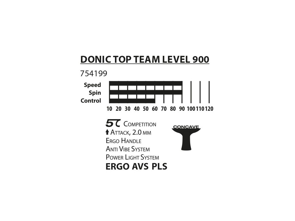 Pálka na stolní tenis DONIC Top Team 900 je určena pokročilým hráčům vyznávajícím technickou hru. Díky dvěma speciálním měkkým vrstvám, které jsou laminovány mezi čepelí a rukojeť pálka absorbuje otřesy. Výsledkem je, že AVS zvyšuje přesnost jak pro defenzivní, tak pro ofenzivní styl hry. Zaoblený Ergo tvar rukojeti zabraňuje tlaku v ruce a poskytuje mimořádně pohodlný a příjemný pocit. Dutá rukojeť systému Power Light snižuje celkovou hmotnost pálky a přenáší těžiště směrem k hlavě, čímž nabízí mnohem vyšší výkon a rychlost při zachování vynikajícího pocitu.