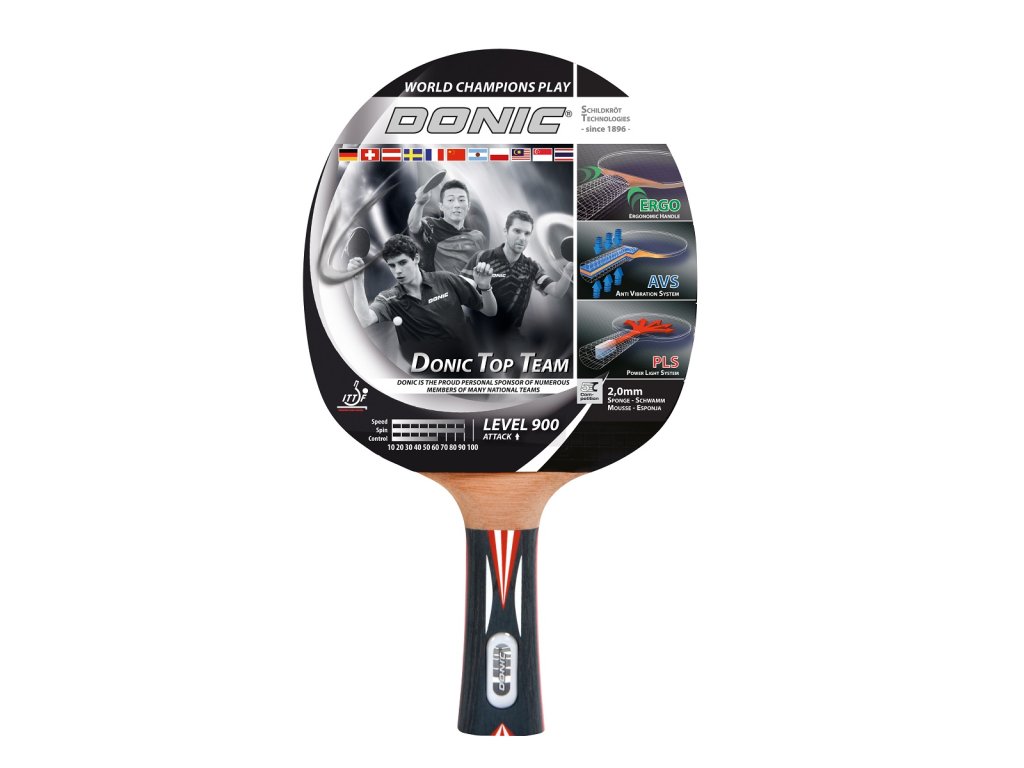 Řada pálek na stolní tenis DONIC Top Team je určena pro hráče různých národních týmů jako například Olivier Brice (Francie), Li Ping (Čína) a Jakub Dyjas (Polsko).