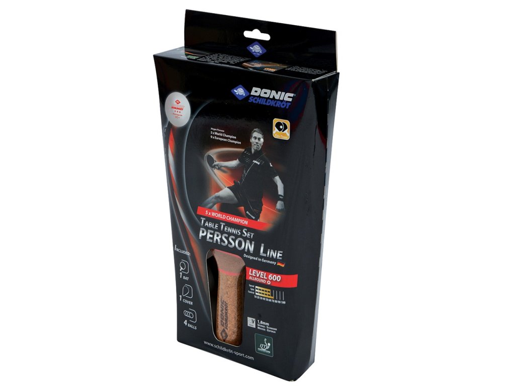 Dárková sada na stolní tenis DONIC Persson 600 Kork je vhodná pro každou příležitost. Sada obsahuje vše, co potřebujete hráč k ambicióznějšímu startu - vše je navrženo tak, aby k sobě ladilo a je ideálním dárkem. Set obsahuje všestrannou raketu Persson 600 s 1,8 mm houbou, kvalitní obal na raketu s přihrádkou na míčky a 4 míčky 3* Avantgarde (průměr 40 mm, nová kvalita polyballu) a je vhodný pro hráče s pokročilou základní technikou. Zabudovaná korková rukojeť zajišťuje bezpečné držení a uchopení i mokrýma rukama. Kulatý středový díl Ergo mezi korkovou rukojetí a základnou perfektně padne do ruky a zabraňuje otlakům. Tato kompletní sada je cenným dárkem pro juniory, kteří již chtějí mít vlastní vybavení.