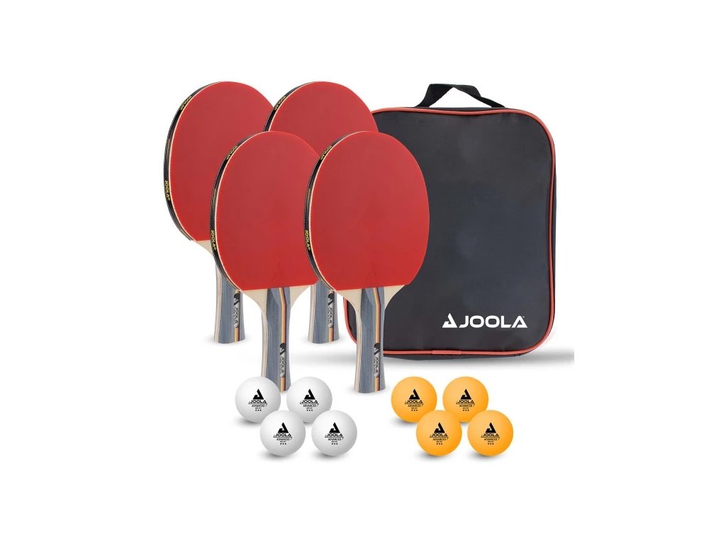 Set na stolní tenis JOOLA Team School je sada 4 pálek Team School určených především pro začátečníky a rekreační hráče. Pálky mají dobrou rychlost i kontrolu. Ergonomický tvar rukojeti zaručuje pohodlné držení. Sada obsahuje též 4 bílé a 4 oranžové míčky. Pingpongový set JOOLA Team School je dodáván v praktickém obalu.