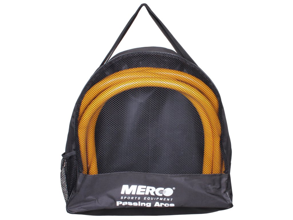 Sada pěti Merco tréninkových oblouků - C v tašce. Tréninkový oblouk slouží ke zlepšení přesnosti přihrávek a kontroly nad míčem. Tréninkový oblouk Merco je vyrobený z PVC trubky o průměru 30 mm, na kterou jsou na obou koncích pevně a esteticky přinýtované ocelové hroty s koncovkami z odolného vysokohustotního polyetylenu pro ochranu před zraněním. Pro dobrou viditelnost jsou oblouky obarvené fluorescentní žlutou barvou. Tréninkový oblouk Merco je určený pro trénink na travnatých hřištích. Oblouk je vysoký 41 cm a široký 49 cm.