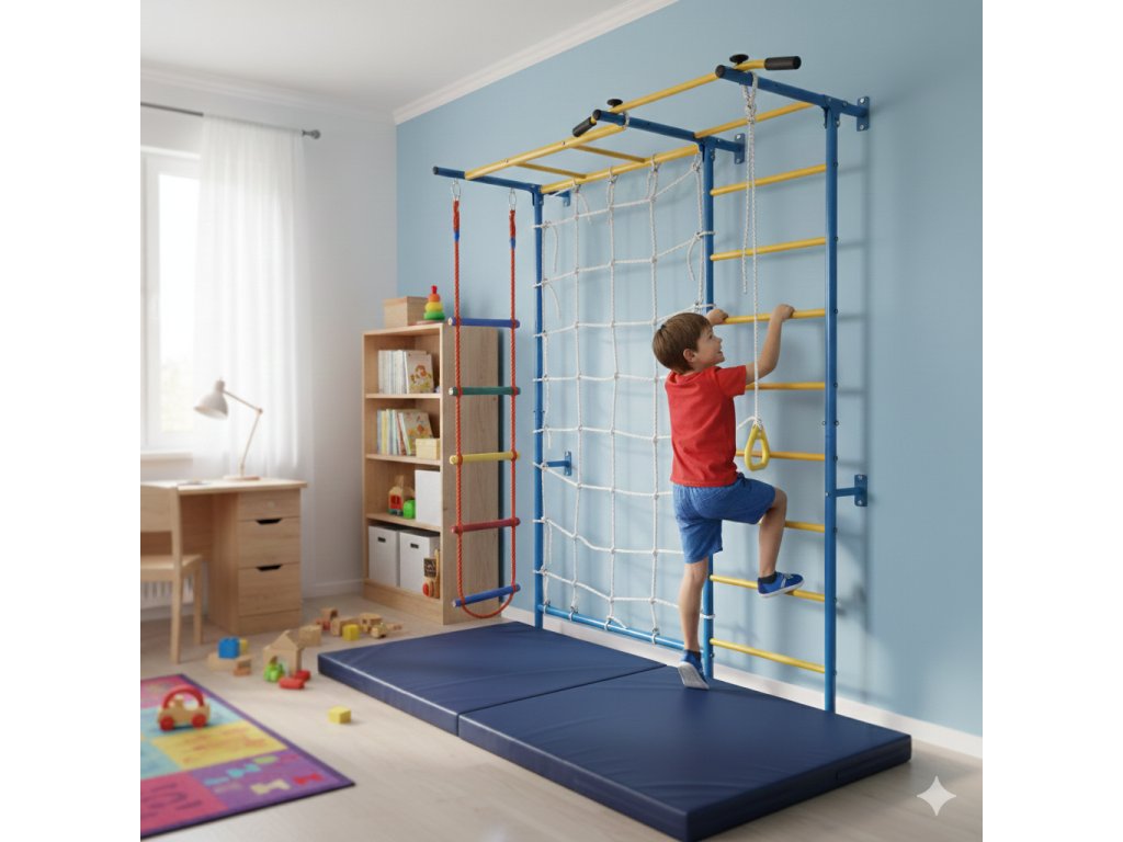 Žebřiny s příslušenstvím MASTER Ribs 7 jsou sofistikovaným modelem prolézačky, která dětem poskytne dostatek zábavy i sportovního vyžití v interiéru. Prolézačka je určena k montáži na zeď – veškeré potřebné šrouby a hmoždinky jsou součástí balení. Žebřiny pro děti je možné umístit ke stěně nebo do rohu dětského pokoje, stěny však musí být dostatečně pevné (výrobek není vhodný k montáži na sádrokarton). Technická data: