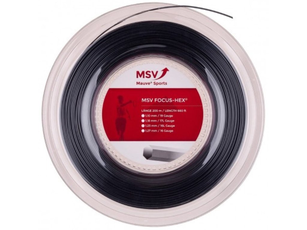 Již řadu let nejoblíbenejší a nejprodávanější výplet z řady MSV a to zejména pro svůj šestihranný profil a stálost napětí, významnou roli hraje i cena,která je oproti jiným značkám výpletů ve stejné kvalitě poloviční až třetinová. Ve všech vlastnostech nejlepší na německém Saitenforum.de (Životnost, Síla, Kontrola, Cit, Komfort, Spin, Stabilita napětí). Celková spokojenost testujících hráčů 91% (39/43 testerů). CoPoly výplet nové generace, HEXagonální profil struny (šestiúhelník). Velmi dobrá trvanlivost strun. Výplet nabízí stálé napětí a dlouhodobý výkon. MSV Focus HEX ztrácí po 30-ti dnech a mnoha hodinách usilovné hry pouze 13% ze svého napětí. Velkou výhodou je potenciál pro spinové údery. Hráči ho popisují jako "nejlepší výplet na spinové údery", a to ve všech jeho průměrech. Hra s tímto výpletem je navíc velmi pohodlná.