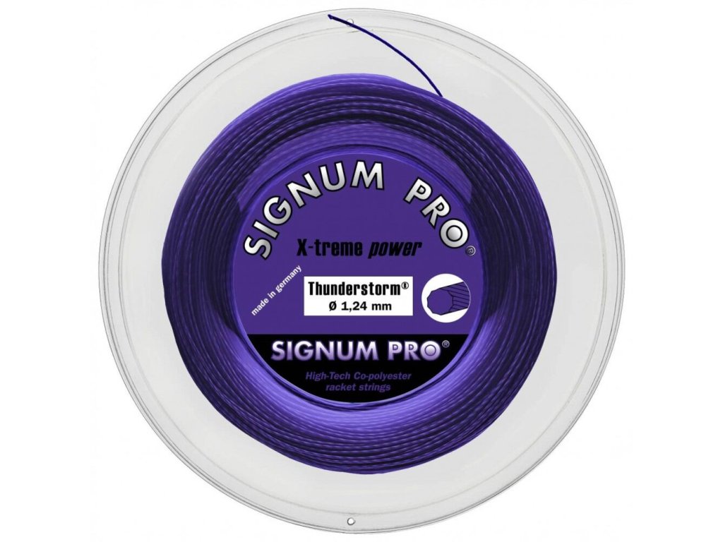 Tenisový výplet Signum Pro Thunderstorm se vyznačuje maximální životností, skvělou pružností a minimální ztrátou napětí. materiál: kopolymer Polyester