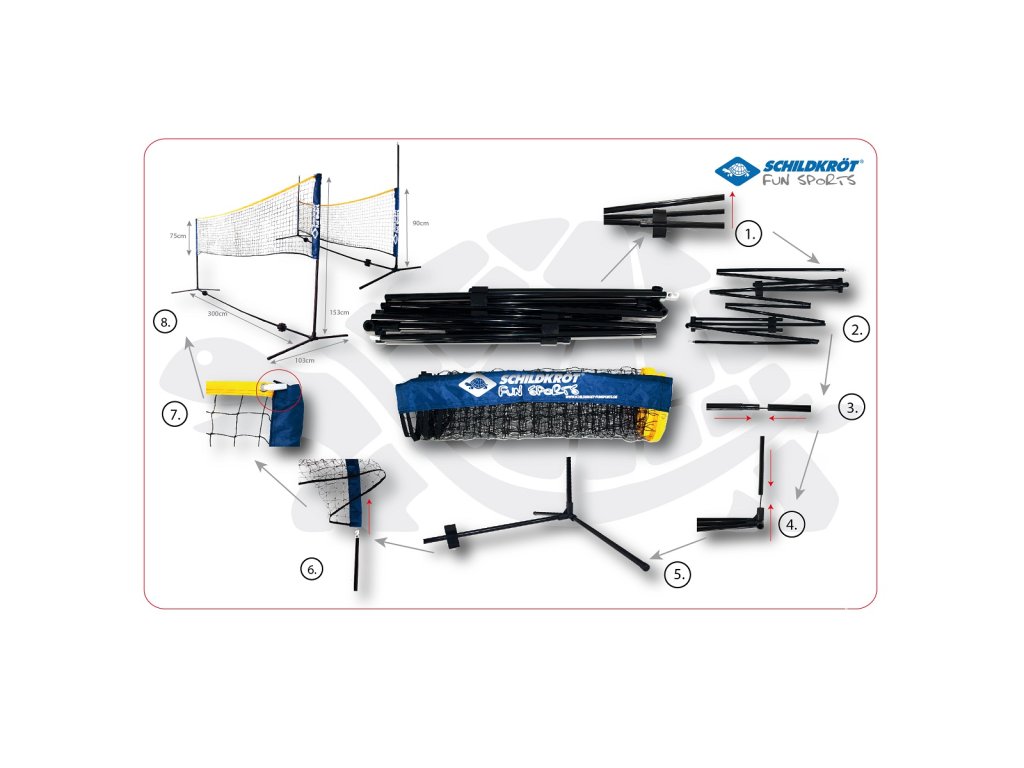 Univerzální síť TALBOT TORRO Kombi nabízí téměř neomezené možnosti využití ve volném čase. Ať už se jedná o pouliční tenis, badminton nebo dokonce i volejbal pro děti. Díky své volně stojící konstrukci může být také postavena v hale, takže ji lze využít i pro školní nebo klubové sporty. Není nutná žádná fixace. Technická data: