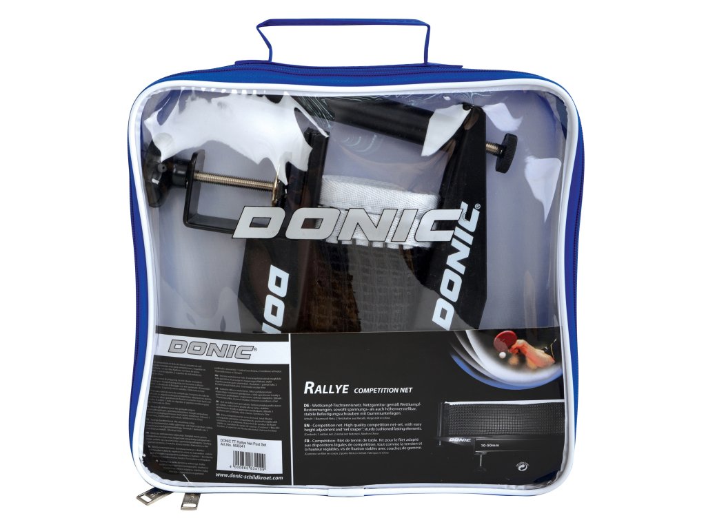 Síťka na stolní tenis DONIC Ralley je prémiová síť renomovaného výrobce, schválená dle pravidel mezinárodní federace ITTF. Velmi robustní kovová konstrukce s pevným uchycením, neklouže na desce stolu díky gumovým vložkám. Síťka je určená pro stoly s tloušťkou desky do 50 mm. Samozřejmostí je výškové nastavení síťě a její napnutí. Vše je zabaleno v praktické tašce se zipem a rukojetí pro přenášení