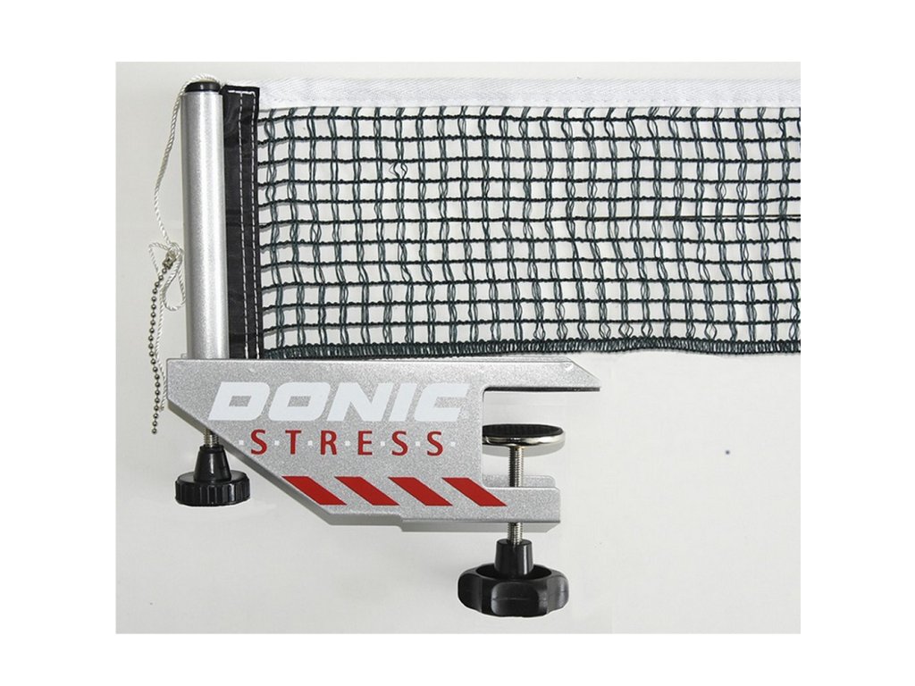 Síť na stolní tenis DONIC Stress má kvalitní kovové držáky a síťku z bavlněné síťoviny. Výrobek je vhodný pro všechny soutěže, samozřejmostí je schválení ITTF.