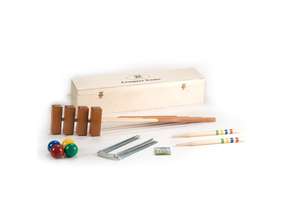Kroket LUCIO LONDERO Professional pro 4 hráče v dřevěném boxu je profesionální kroket od originálního italského výrobce s více jak 50-tiletou tradicí výroby dřevěných produktů. Cílem kroketu je údery dřevěné palice posunout kouli přes branky až k cílovému kolíku. Hra je vhodná pro všechny, kteří s kroketem začínají i pro již zkušenější hráče.