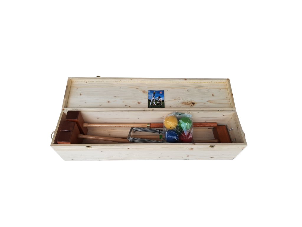 Kroket LUCIO LONDERO Professional pro 6 hráčů v dřevěném boxu je profesionální kroket od originálního italského výrobce s více jak 50-tiletou tradicí výroby dřevěných produktů. Cílem kroketu je údery dřevěné palice posunout kouli přes branky až k cílovému kolíku. Hra je vhodná pro všechny, kteří s kroketem začínají i pro již zkušenější hráče.