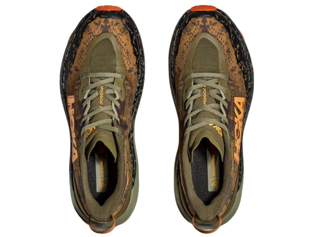 Hoka One One Speedgoat je jeden z nejpopulárnějších modelů, který je navržený do technicky náročnějšího terénu. Již šestá řada nabízí pohodlí díky osvědčenému tlumení a skvělou trakci i na drsnějším povrchu díky technologii Vibram® Megagrip s konstrukcí Traction Lug. Model Speedgoat 6 si zachovává stejnou výšku podrážky a tvar kolébky jako předchozí model, využívá lehčí směs materiálu v mezipodešvi a prodyšný svršek z tkané textilie pro lehký a zároveň komfortní běh. - lehký tkaný svršek - vyšší pata pro snadnější nazouvání - konstrukce Late Stage Meta-Rocker umožňuje dynamický a plynulý pohyb na nerovném terénu - zpevněná špička - upravená orientace výstupků na podešvi pro lepší trakci - lehká, měkká směs mezipodešve - Vibram® Megagrip podrážka s 5 mm vzorkem poskytuje skvělou přilnavost