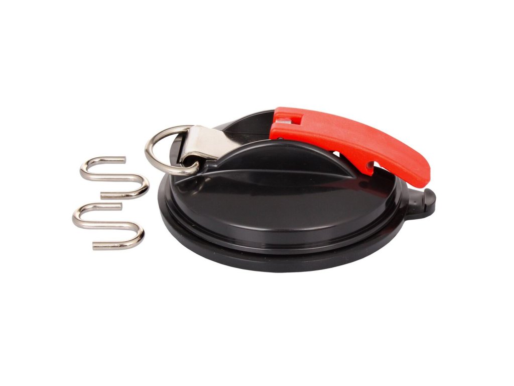 Multifunkční přísavka se dvěma háčky na hladký povrch. Pro autocamping a použití v domácnosti.