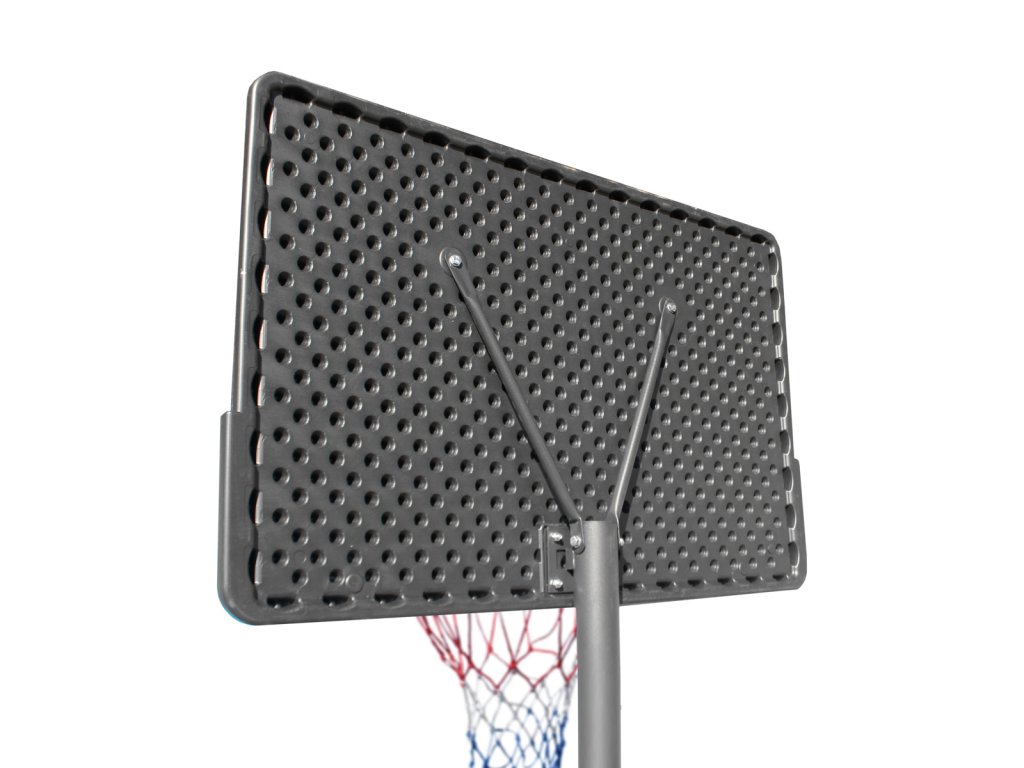 Nastavitelná výška: Výšku obroučky lze nastavit v sedmi polohách v rozmezí 245–305 cm, což umožňuje přizpůsobit koš podle věku a dovedností hráčů.