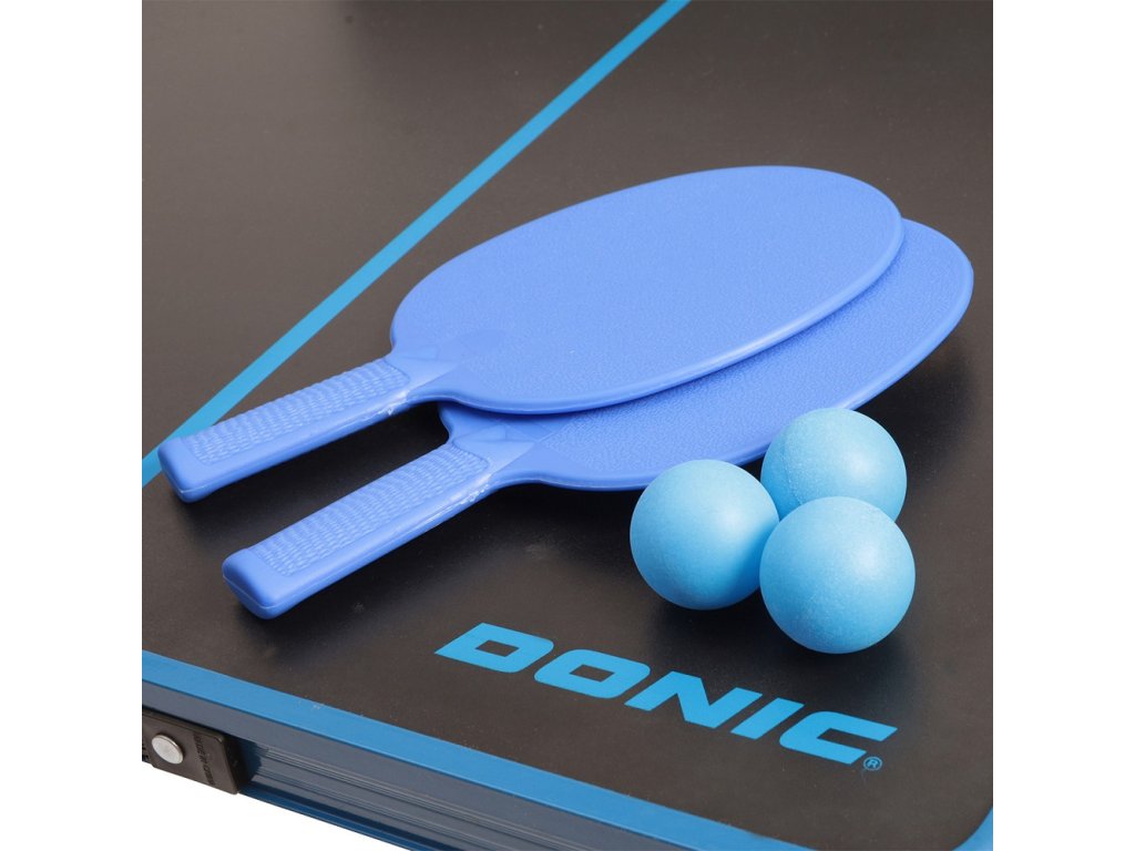 Po rozložení a připevnění sítě je stůl ihned připraven ke hře. Výšku stolu lze nastavit buď na 60 cm (pro děti) nebo 70 cm (pro dospělé). Ve složeném stavu lze kompletní sadu snadno přepravovat a skladovat ji prostorově úsporným způsobem.