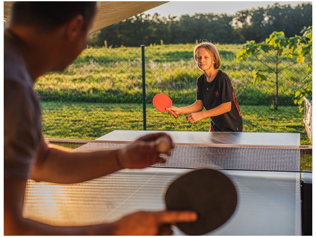 stůl je vybaven držákem síťky a výškově nastavitelnou síťkou s možností napnutí