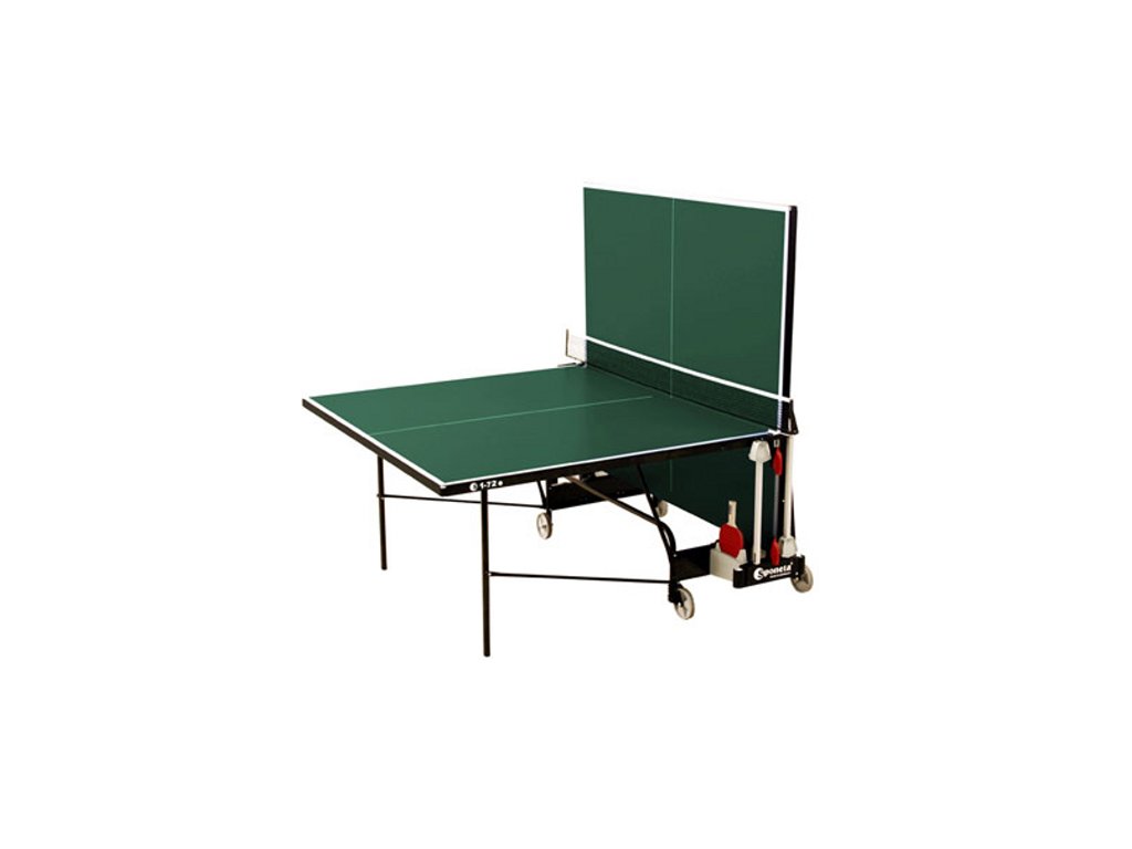Stůl na stolní tenis SPONETA S1-72e pro venkovní - exteriérové použití je opatřen kolečky pro snadnou manipulaci. Deska stolu je vyrobena z melaminu, která umožňuje stálé umístění venku. Pingpongový stůl na stolní tenis S1–72e je dodáván spolu s držákem na síťku, síťkou a je propracovanějším nástupcem modelu SPONETA S1-12e. Technická data: