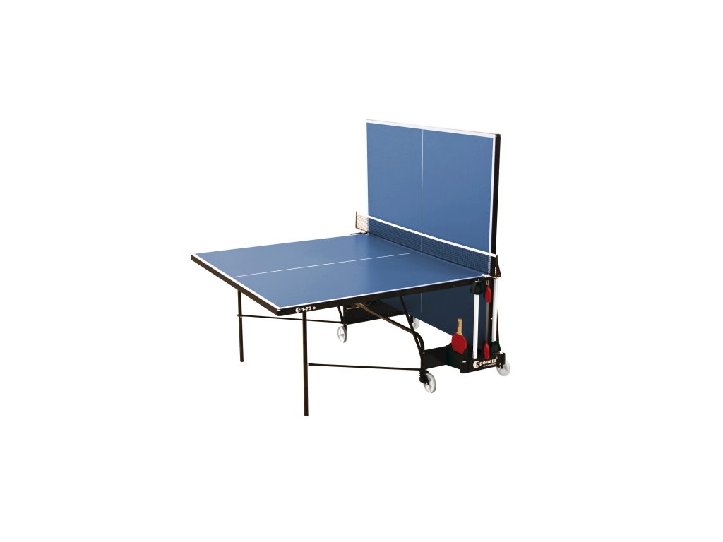 Stůl na stolní tenis SPONETA S1-73e pro venkovní - exteriérové použití je opatřen kolečky pro snadnou manipulaci. Deska stolu je vyrobena z melaminu, která umožňuje stálé umístění venku. Pingpongový stůl na stolní tenis S1–73e je dodáván spolu s držákem na síťku, síťkou a je propracovanějším nástupcem modelu SPONETA S1-13e. Technická data: