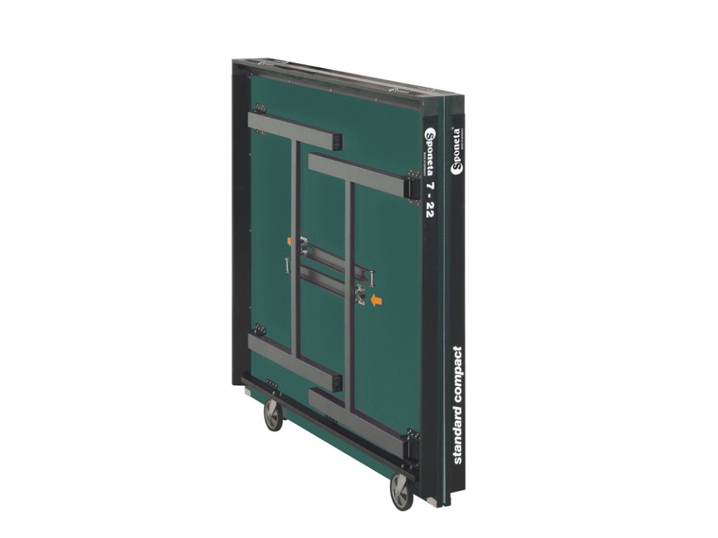 Závodní stůl na stolní tenis SPONETA S7-22i standard compact pro vnitřní - interiérové použití. Pingpongový stůl SPONETA na stolní tenis S7–22i je dodáván spolu s držákem na síťku a síťkou. Technická data: