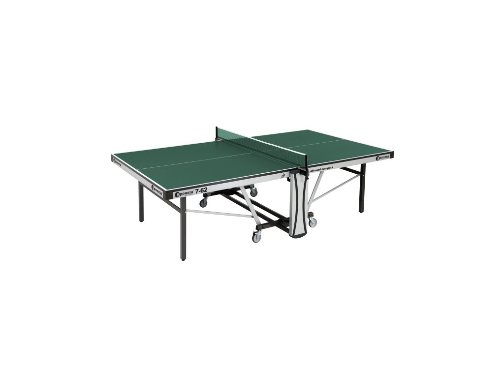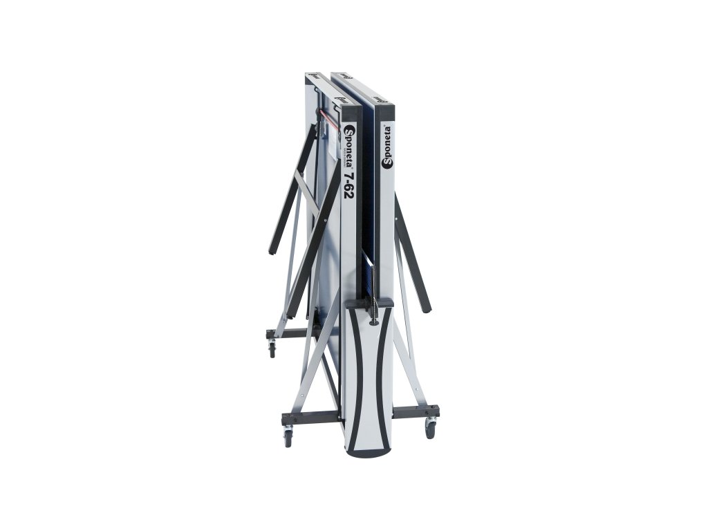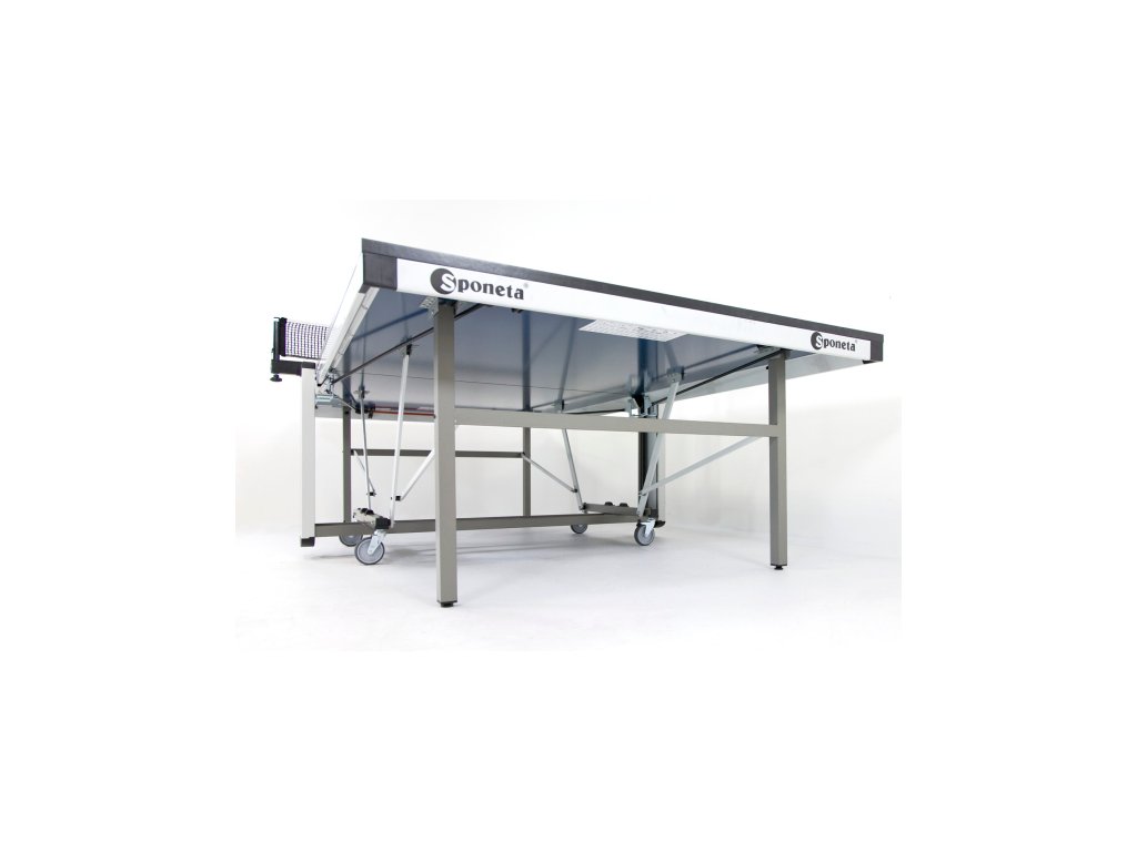 Závodní stůl na stolní tenis SPONETA S7-62i pro vnitřní - interiérové použití. Stůl je opatřen kolečky pro snadnou manipulaci ve složeném stavu, z toho 2 kolečka mají aretaci proti pohybu. Pingpongový stůl SPONETA na stolní tenis S7–62i je dodáván spolu s držákem na síťku a síťkou. Technická data: