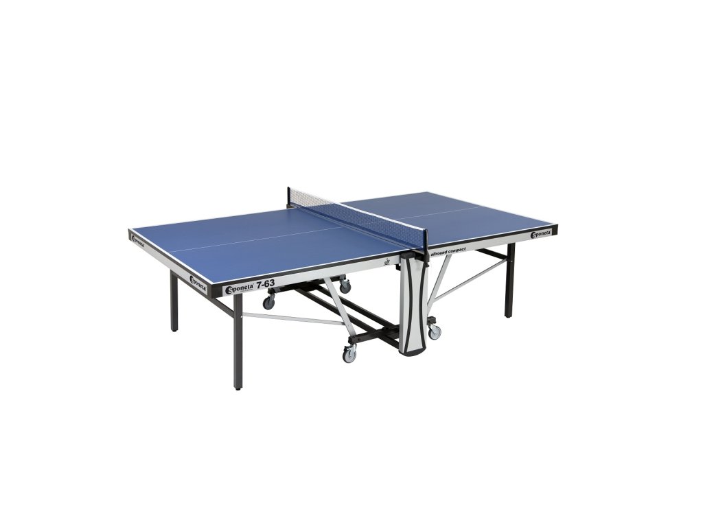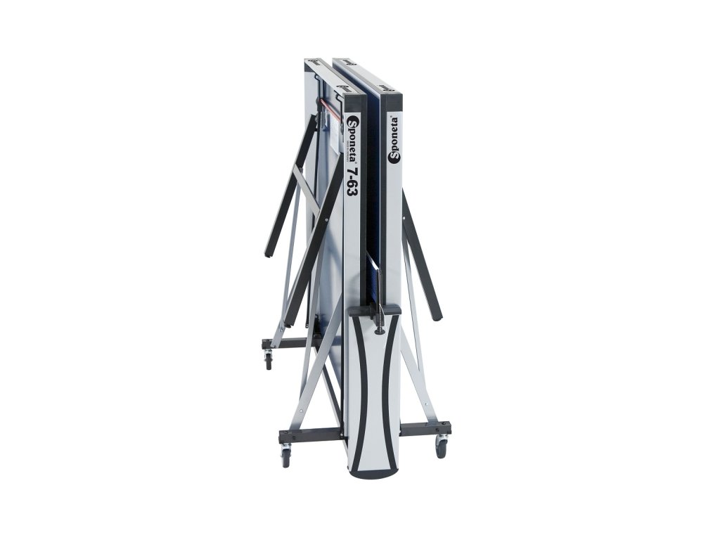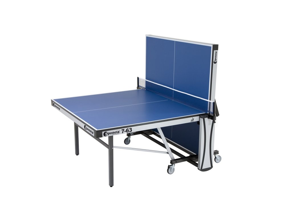 Závodní stůl na stolní tenis SPONETA S7-63i pro vnitřní - interiérové použití. Stůl je opatřen kolečky pro snadnou manipulaci ve složeném stavu, z toho 2 kolečka mají aretaci proti pohybu. Pingpongový stůl SPONETA na stolní tenis S7–63i je dodáván spolu s držákem na síťku a síťkou. Technická data: