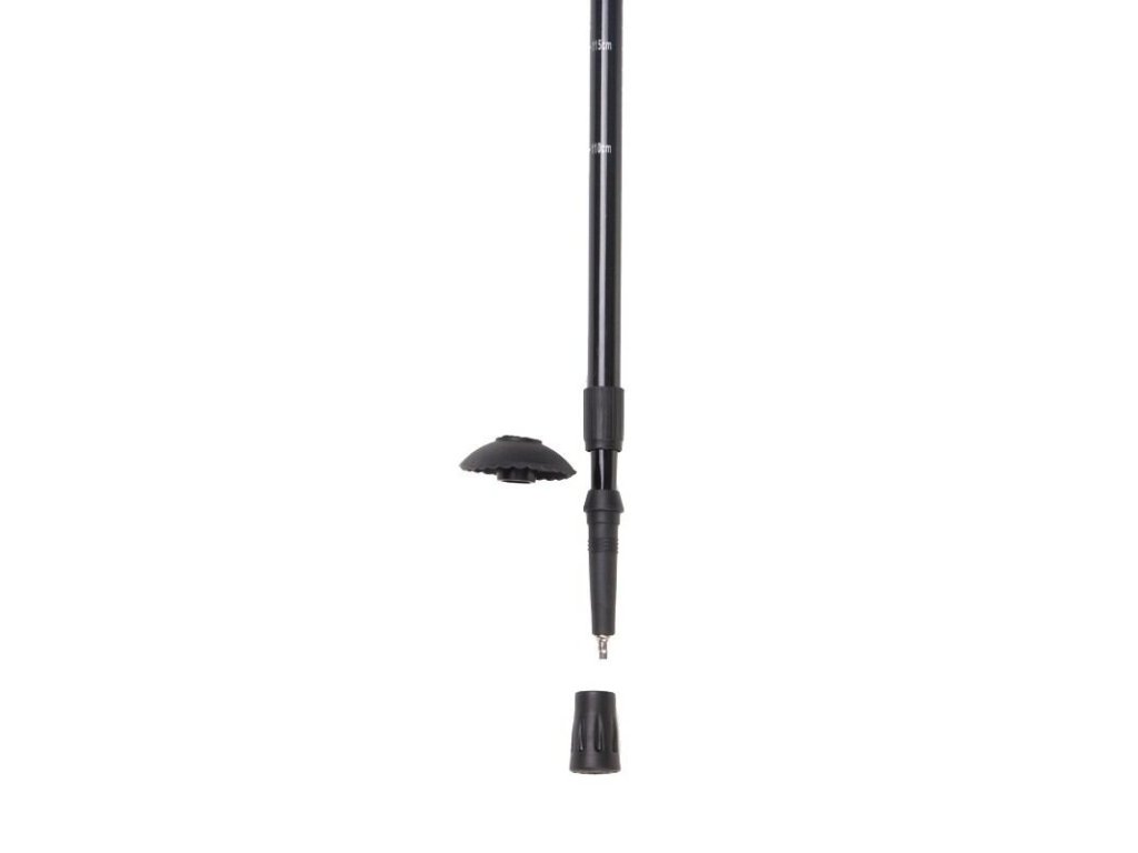 Teleskopické turistické hůlky s neoprenovým popruhem, korkovou rukojetí a neoprenovým rozšířením rukojetí. Tyto trekové hole jsou vyrobeny z uhlíkové a hliníkové slitiny a skládají se ze tří částí. Mají karbidový hrot s odnímatelným kloboučkem a botičkou a jsou nastavitelné. Hole mohou být až 135 cm dlouhé, ve složeném stavu mají délku 66 cm. Hmotnost holí je 480 g.